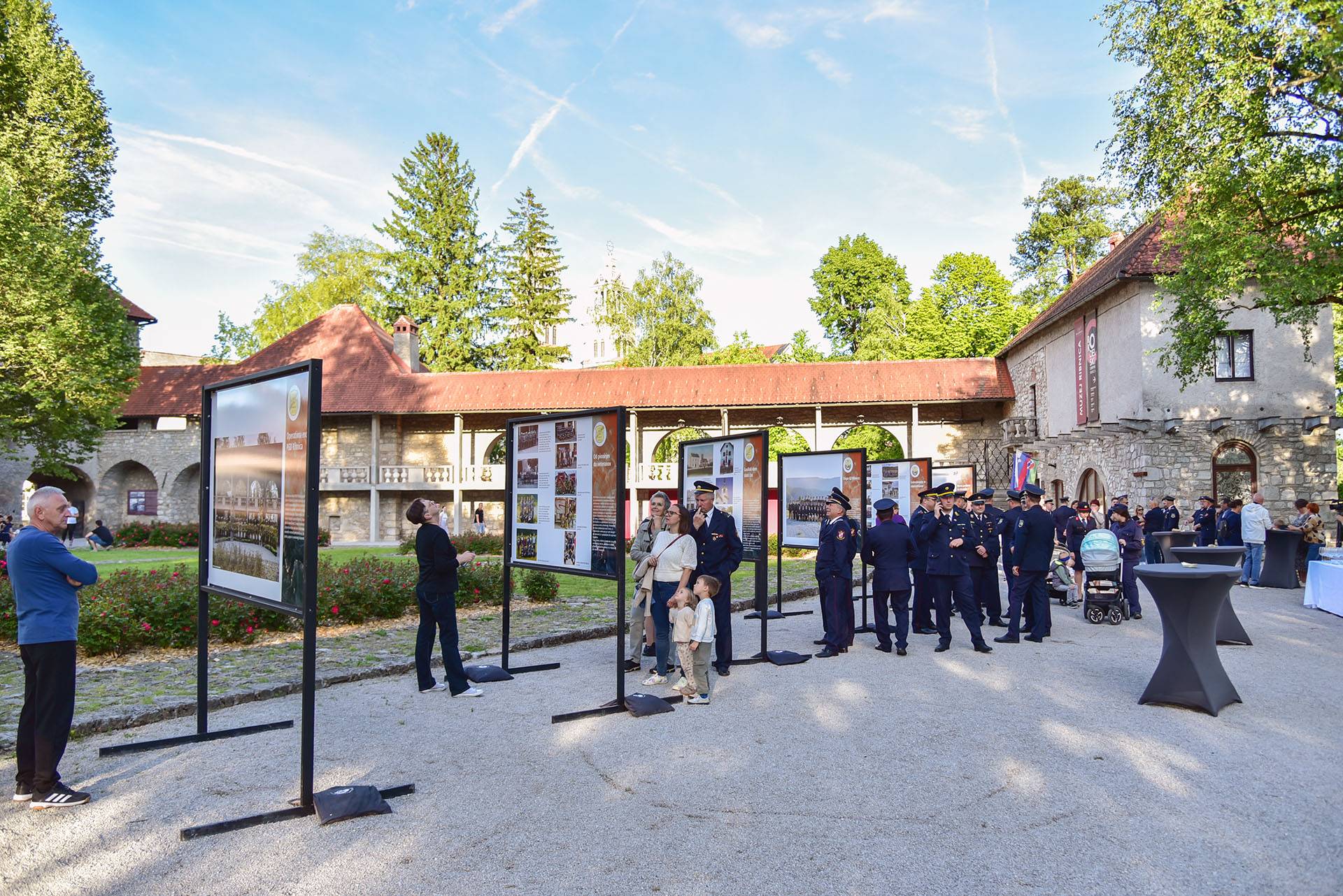 En dan kasneje 30.5. smo v sodelovanju z Rokodelskim centrom Ribnica in PGD Ribnica v ribniškem gradu otvorili fotografsko razstavo “Na pomoč!” na panojih s kratko slikovno in tekstovno predstavitvijo zgodovine delovanja gasilstva na Ribniškem.
